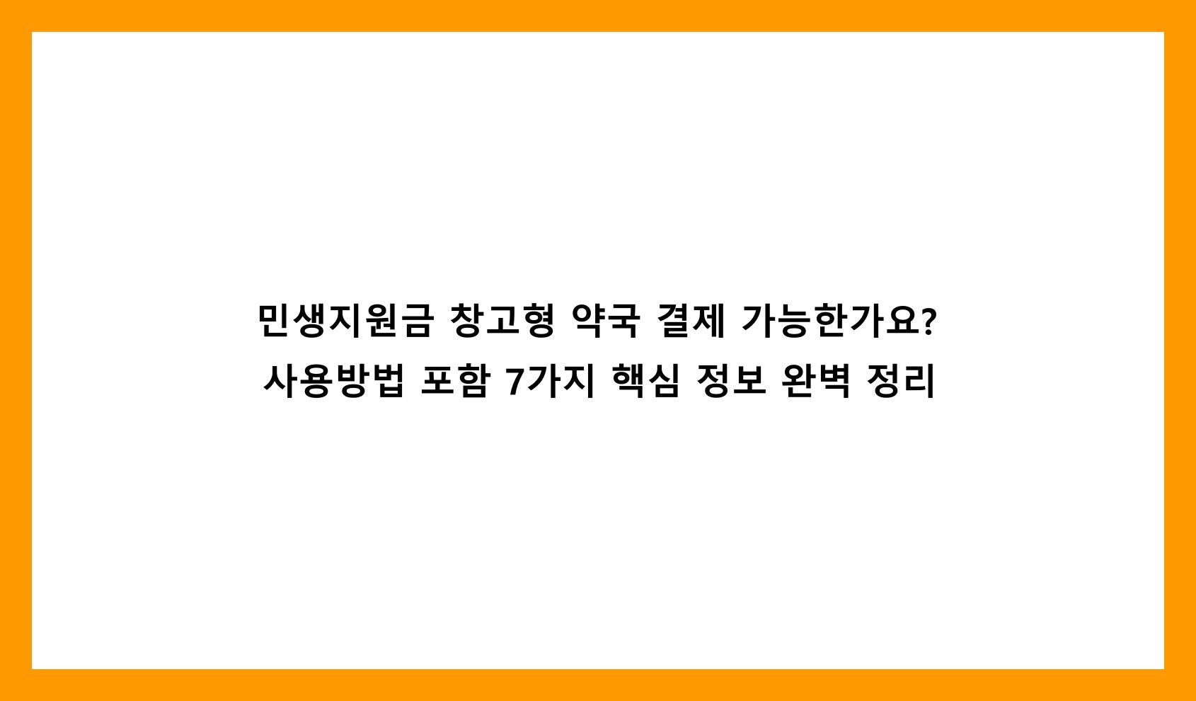 1. 민생지원금, 창고형 약국 결제 가능한가요?